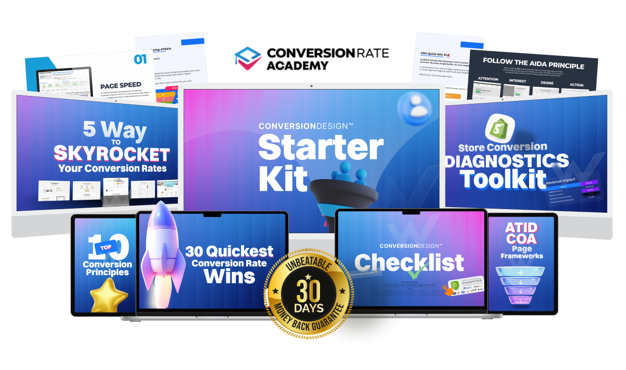 Disclaimer: Results mentioned on this page are not typical. Individual results will vary based on store traffic, niche, and implementation. The ConversionDesign™ Starter Kit is a digital educational resource. ConversionWise makes no income guarantees.