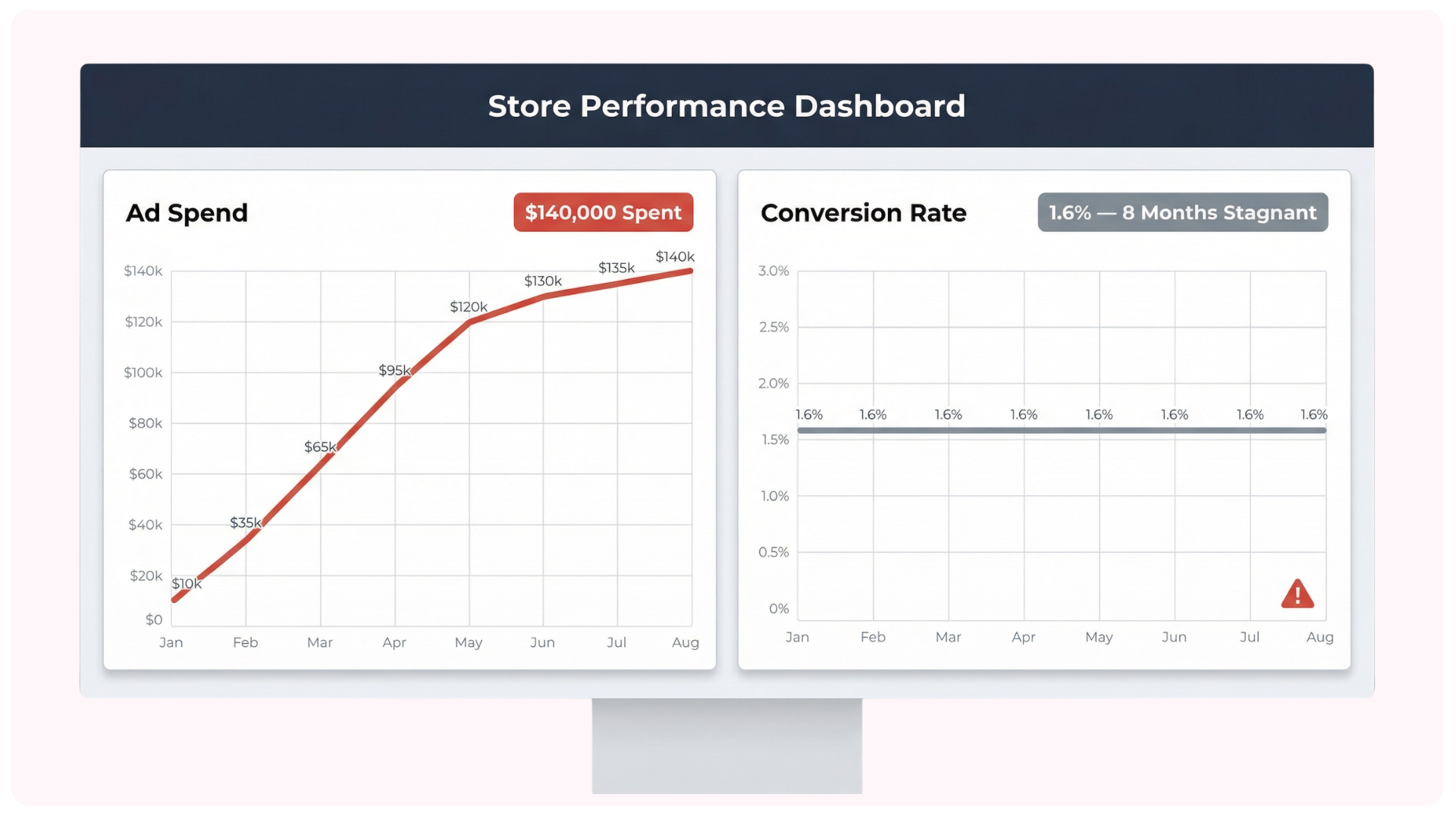 A founder came to us in 2023 running a Shopify supplement brand doing around $80,000 a month.